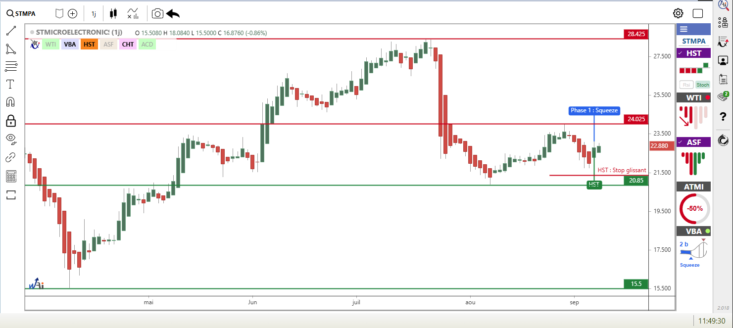 STMICROELECTRONICS: +3.78% (Cours de clôture du 5/09: 22.80€)